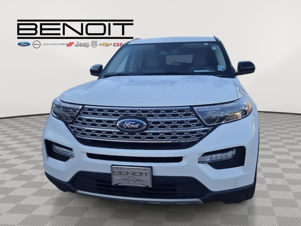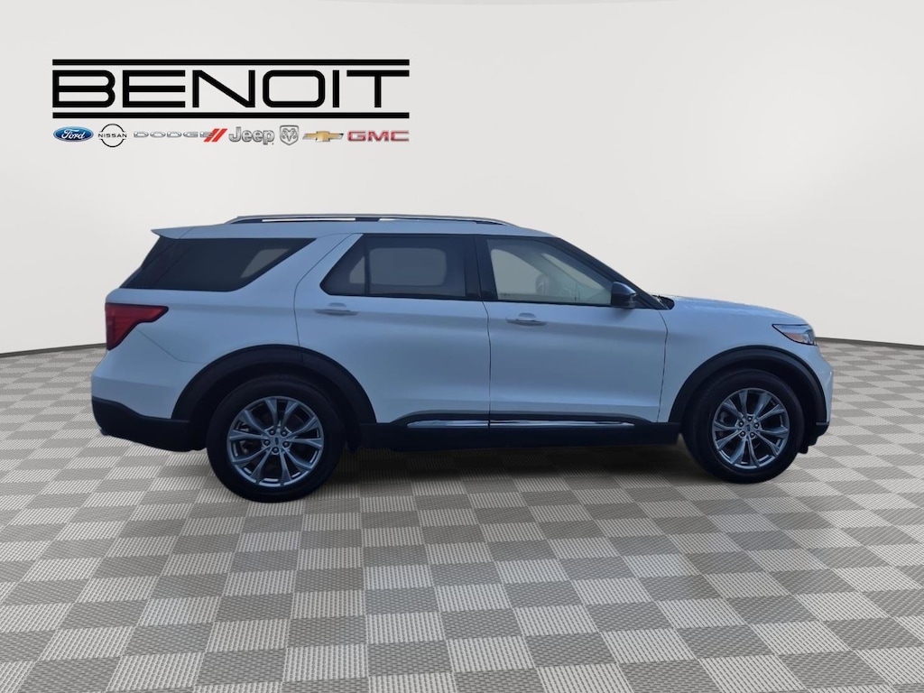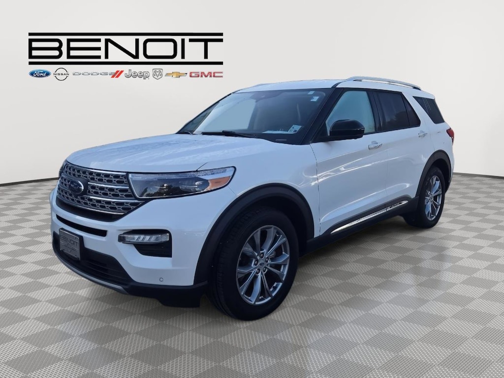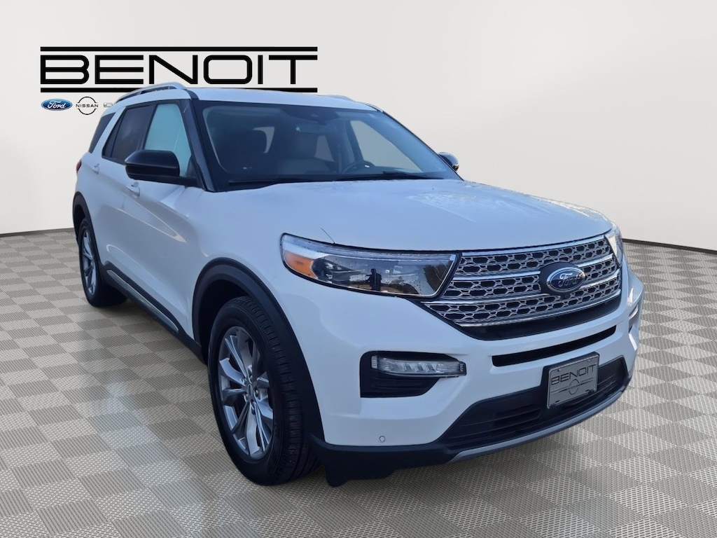 2022 Ford Explorer Limited Star White Metallic Tri-Coat with Sandstone Interior.