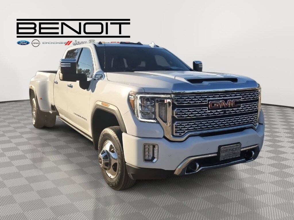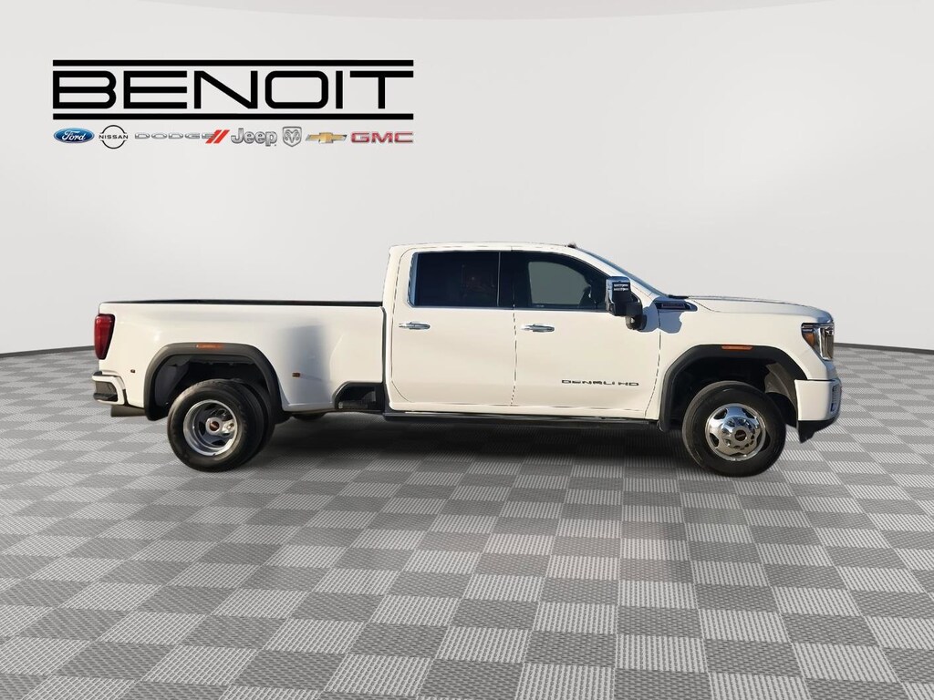 2022 GMC Sierra 3500HD Denali Summit White with Dark Walnut/Dark Ash Grey Interior.